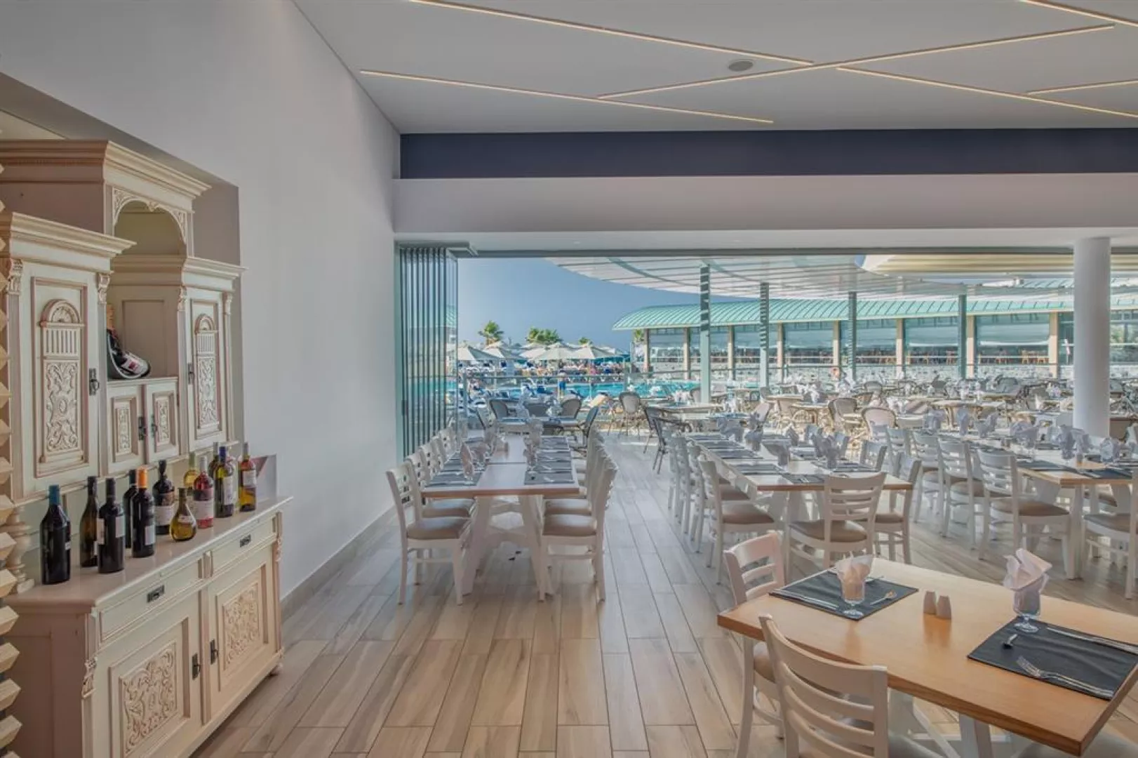 All inclusive zahŕňa raňajky (7:00-10:30), neskoré a skoré raňajky, obedy (12:30-14:30) a večere (18:30-21:30) formou bufetu v hlavnej reštaurácii. Nealkoholické a miestne alkoholické nápoje sú k dispozícii od 10:00 do 24:00 na určených miestach. Raz za pobyt je možné využiť večeru v à la carte reštaurácii zdarma. Pri večeri je vyžadované formálne oblečenie.
