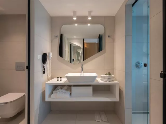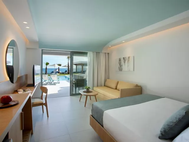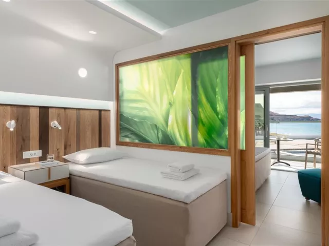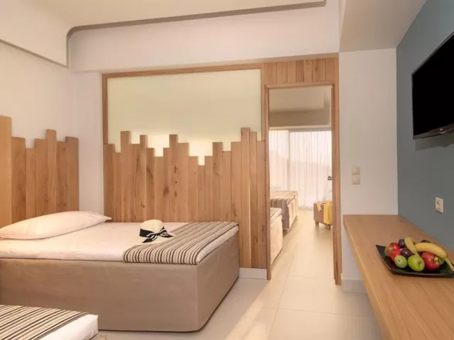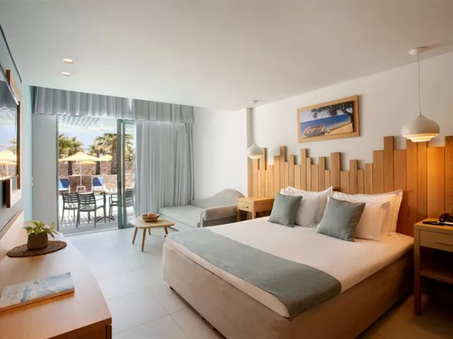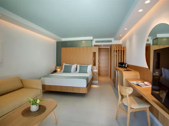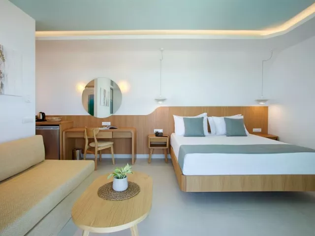 Štandardné dvojlôžkové izby sú vybavené vlastným sociálnym zariadením (kúpeľňa, WC, sušič vlasov), telefónom, klimatizáciou, WiFi, chladničkou, SAT/TV, setom na prípravu kávy/čaju, trezorom a balkónom alebo terasou. Izby sú umiestnené v prílohe, ktorá leží za miestnou cestou a sú určené pre osoby staršie ako 16 rokov. Za príplatok sú k dispozícii izby v hotelovej časti na pláži, vrátane dvojlôžkových izieb s výhľadom na more, bungalovov s priamym výhľadom na more a vlastným bazénom, alebo rodinné izby s výhľadom na more až pre päť osôb.