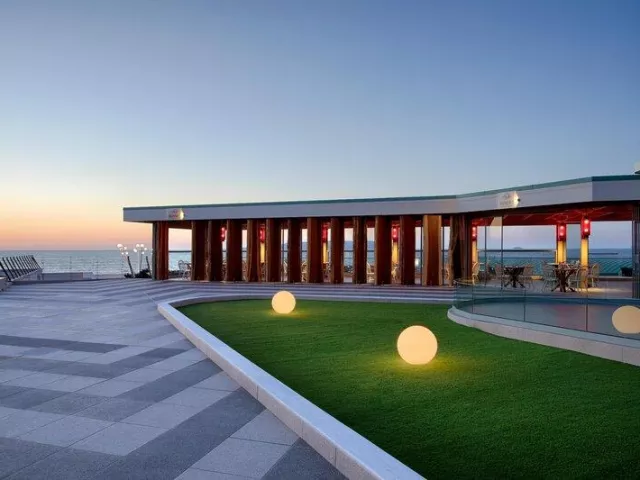 Hotelová piesočnatá pláž, ocenená certifikátom Modrá vlajka, s pozvoľným vstupom do mora, sa nachádza priamo pri hoteli; ležadlá, slnečníky a osušky sú k dispozícii zdarma.