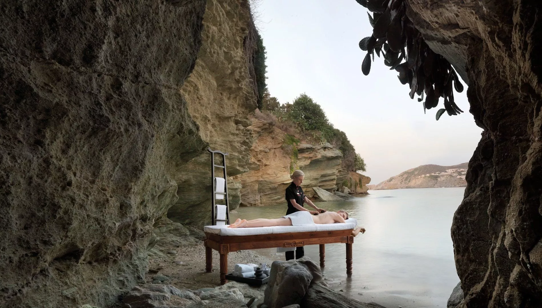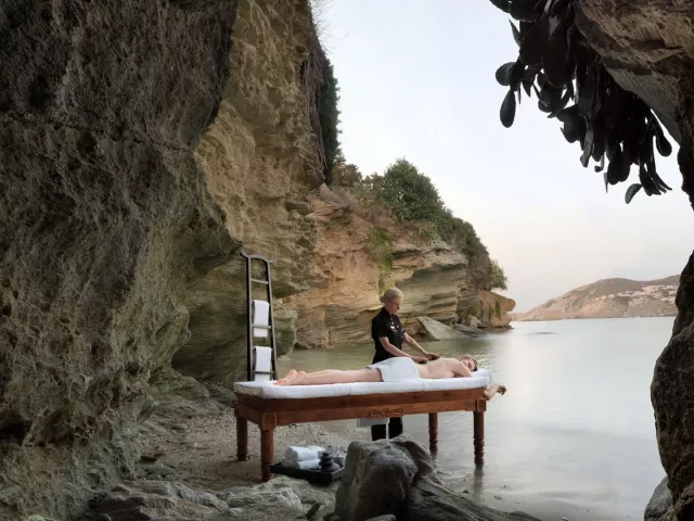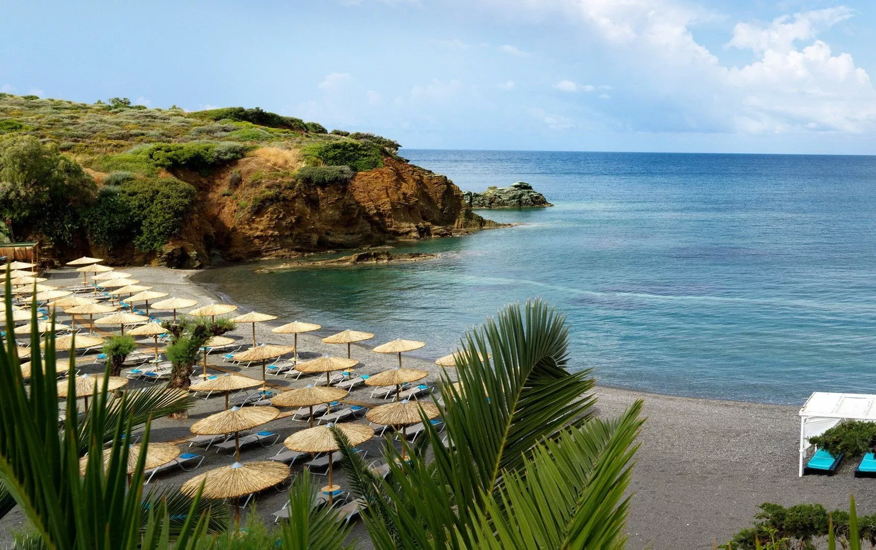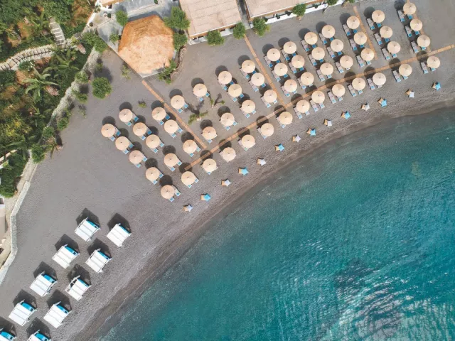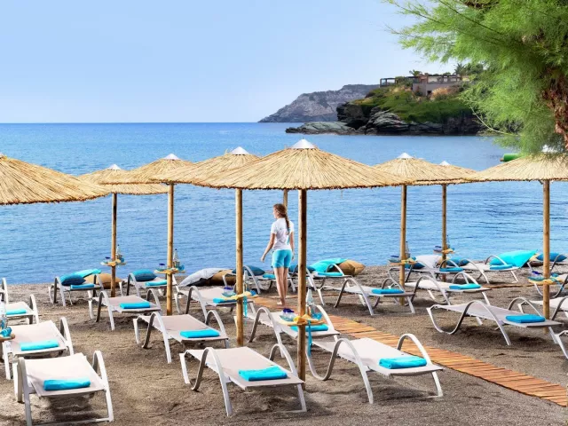 Priamo v areáli sa nachádzajú dve pláže - piesočnatá pláž Agia Pelagia a okruhliaková Cladissos Bay. Na plážach sú k dispozícii lehátka, slnečníky a osušky bez poplatku.