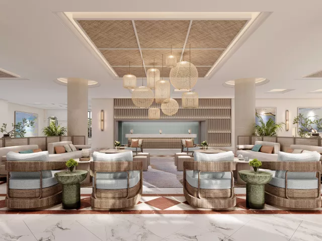 Hotel ponúka vstupnú halu, recepciu, hlavné a à la carte reštaurácie, bary, konferenčnú miestnosť, terasu s výhľadom na more, minimarket a bezplatné WiFi v lobby. Na terasách si môžete užiť slnenie, sú tu bazény, detský bazén s replikou lode a skluzavky. Za príplatok je možné využiť službu hlídania detí.