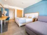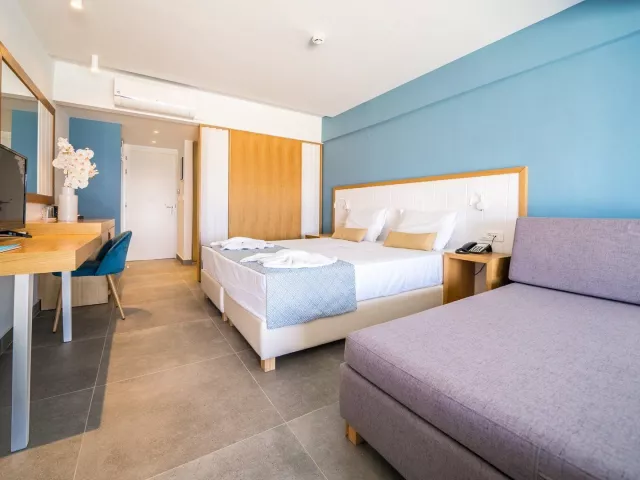 Izby sú dvojlôžkové s možnosťou prístelky a výhľadom do záhrady, vybavené vlastným sociálnym zariadením (kúpeľňa/sprchový kút, fén, WC), SAT/TV, klimatizáciou, chladničkou, WiFi a balkónom alebo terasou. Pre tých, ktorí hľadajú lepší výhľad, sú k dispozícii aj izby s výhľadom na more za príplatok.
