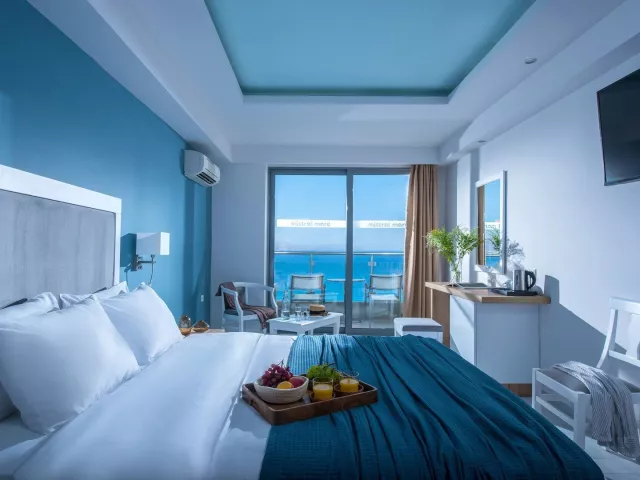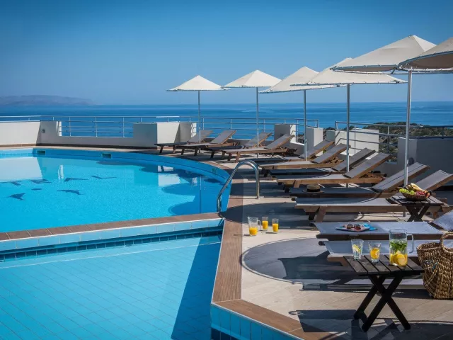 Hotel Mistral Mare sa nachádza na svahu, približne 200 m od pláže Golden Beach, s krásnymi výhľadmi do okolia. Je vzdialený cca 9 km od letoviska Agios Nikolaos a cca 72 km od medzinárodného letiska v Heraklione.