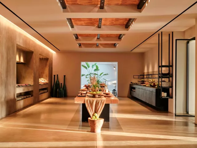 Vstupná hala s recepciou, 3 reštaurácie, hlavný bar, bary pri bazéne, bar na pláži, kaviareň, bazén so sladkou vodou, ležadlá a slnečníky zadarmo, vínna pivnica.