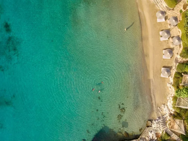 Dve menšie piesočné pláže ocenené modrou vlajkou. Lehátka a slnečníky zadarmo.