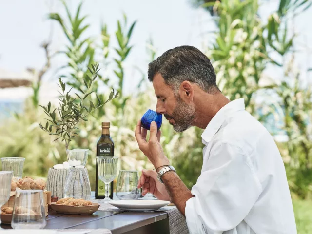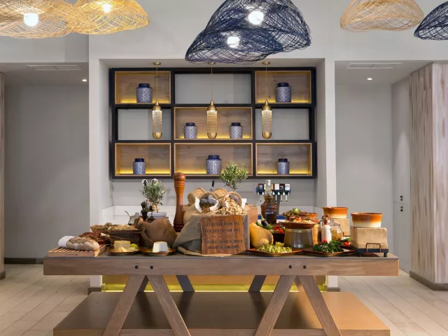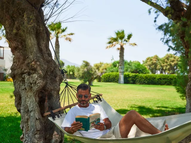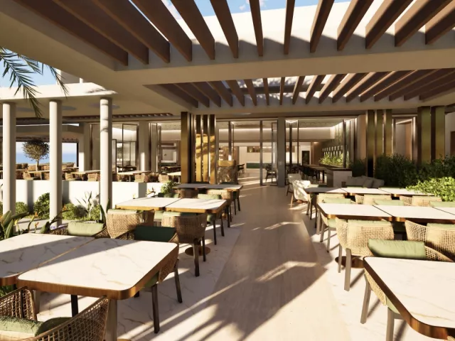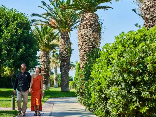 Hotel pozostáva z hlavnej budovy a bungalovov v krétskom štýle. K dispozícii je vstupná hala s recepciou, reštaurácia ponúkajúca medzinárodnú a grécku kuchyňu, taverna a á la carte talianska reštaurácia. Pred hotelom sú tri bazény, detské brodítko a slnečná terasa s bezplatnými ležadlami, osušiek a slnečníkmi.