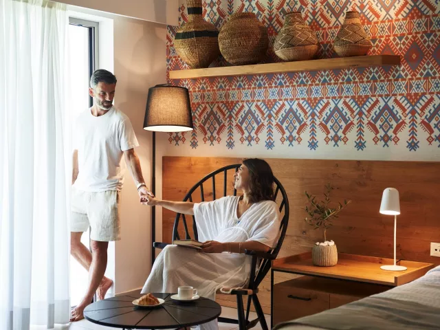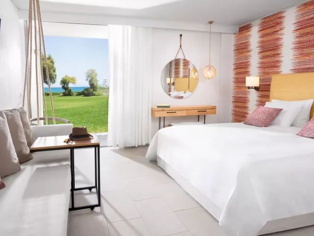 Izby sú vybavené kúpeľňou (sušič vlasov), WC, klimatizáciou, telefónom, TV/satelitem, hudobným kanálom, trezorom (zdarma), mini chladničkou (s fľašou vody pri príchode) a balkónom alebo terasou. Hotel ponúka rôzne typy izieb vrátane dvojlôžkových izieb s výhľadom na more, bungalovov a suit. Všetky izby sú moderne zariadené a niektoré majú bonusy ako župany, papuče či kávovar Nespresso.