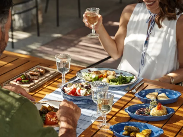 Agapi Beach Hotel ponúka All Inclusive Premium, vrátane rozšírených raňajok, obedov a večerí formou bufetu. Rôzne snacky a nápoje sú dostupné počas dňa v taverne a baroch.
