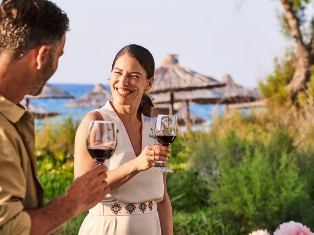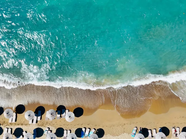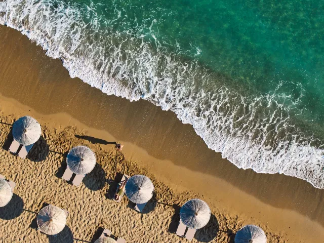 Hotel je priamo pri piesočnatej pláži ocenenej modrou vlajkou, kde sú k dispozícii ležadlá, slnečníky a uteráky zdarma. Na pláži sa nachádza aj taverna.