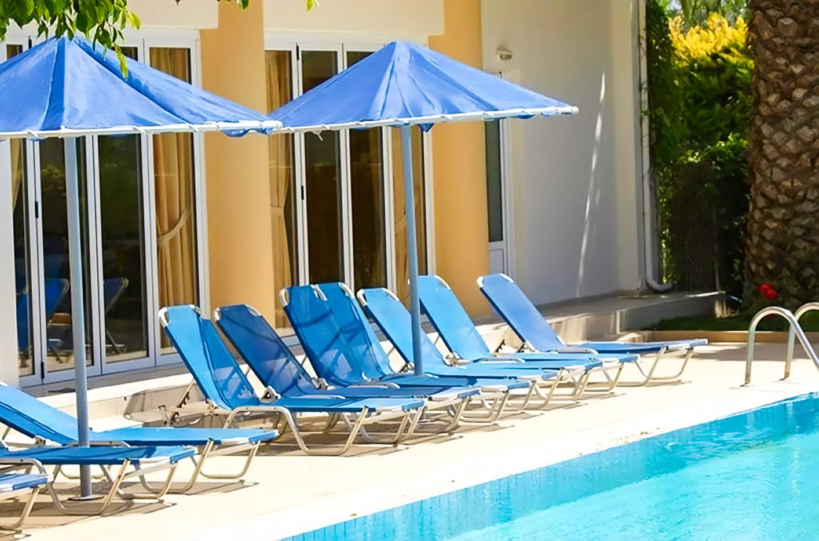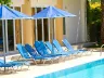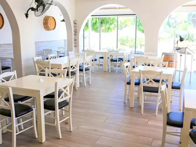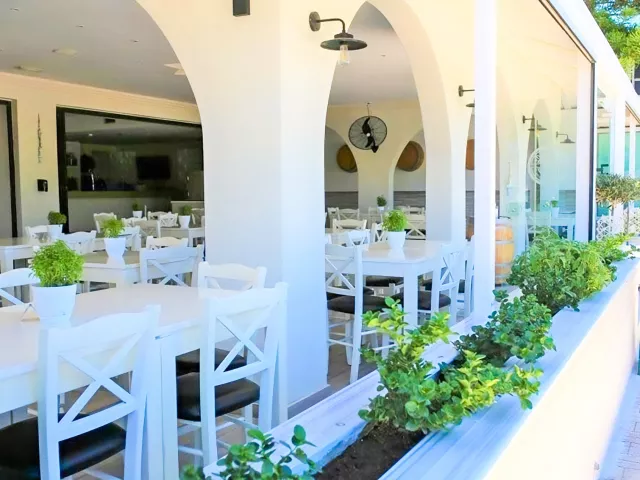 Pláž je piesočnatá s kamienkami, prístupná po miestnej komunikácii. Ležadlá a slnečníky sú k dispozícii za poplatok.