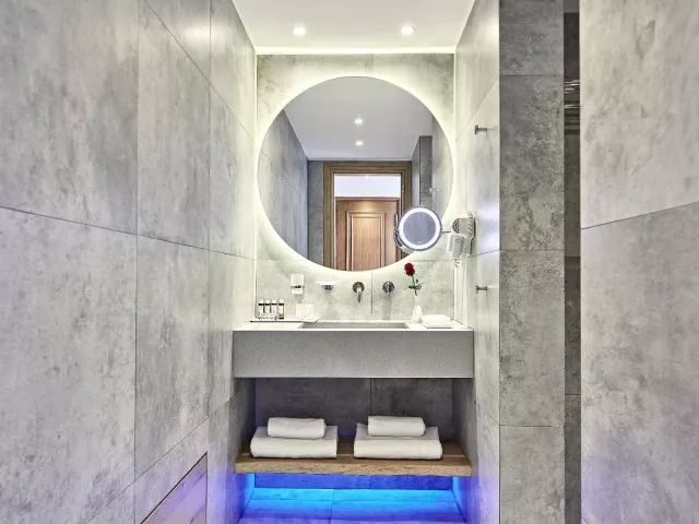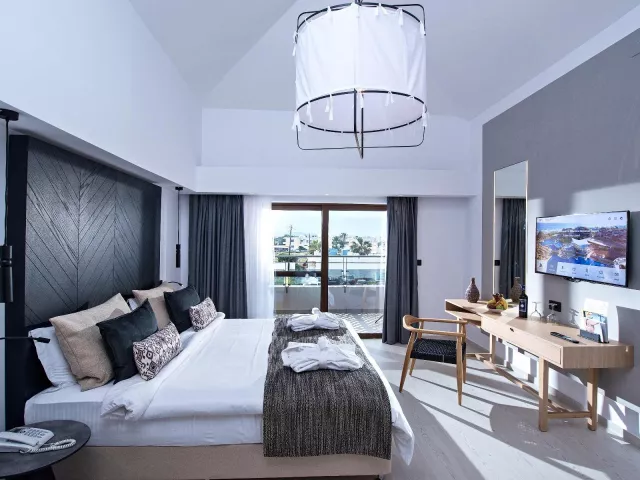 Izby sú vybavené klimatizáciou, LCD satelitnou TV, kúpeľňou/WC so sušičom vlasov, trezorom, minibarom (nealkoholické nápoje, pivo a víno bez poplatku), županom, papučami, žehličkou, a chladničkou. V ponuke sú aj izby s výhľadom na okolité prostredie a čiastočným výhľadom na more, rodinné izby so spálňami oddelenými posuvnými dverami a priestranné apartmány s obývacou časťou a súkromným bazénom.