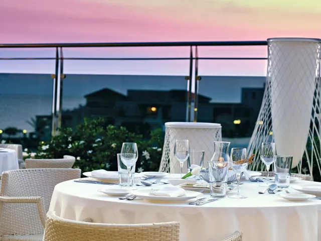 All Inclusive zahŕňa raňajky, obedy a večere formou bufetu s rôznymi témami. Rôzne reštaurácie ponúkajú špeciality z gréckej, mexickej a thajskej kuchyne, pričom rezervácia je nutná vopred. Množstvo barov ponúka neobmedzené nápoje a ľahké občerstvenie počas celého dňa a večera.
