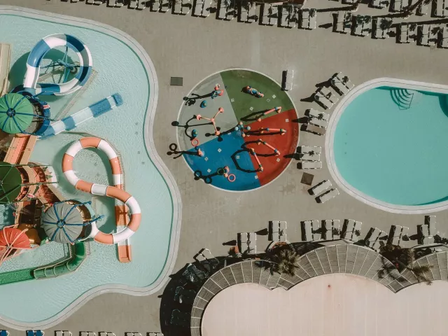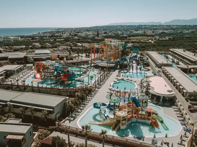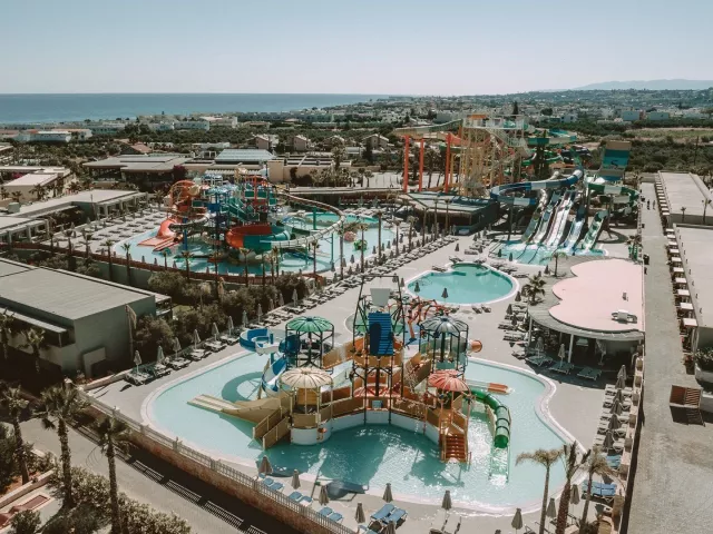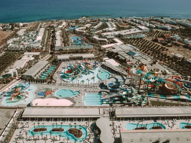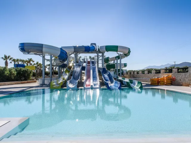 Hotel disponuje vstupnou halou, lobby, reštauráciou, gréckou tavernou, tromi barmi, obchodom so suvenírmi, dvoma bazénmi a troma detskými bazénmi, aquaparkom, minimarketom a detským ihriskom. Lehátka, slnečníky a osušky pri bazénoch sú tiež k dispozícii zadarmo. WiFi pripojenie je možné vo verejných priestoroch a na izbách bez poplatku.