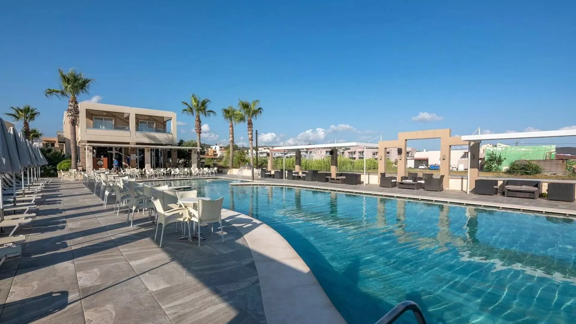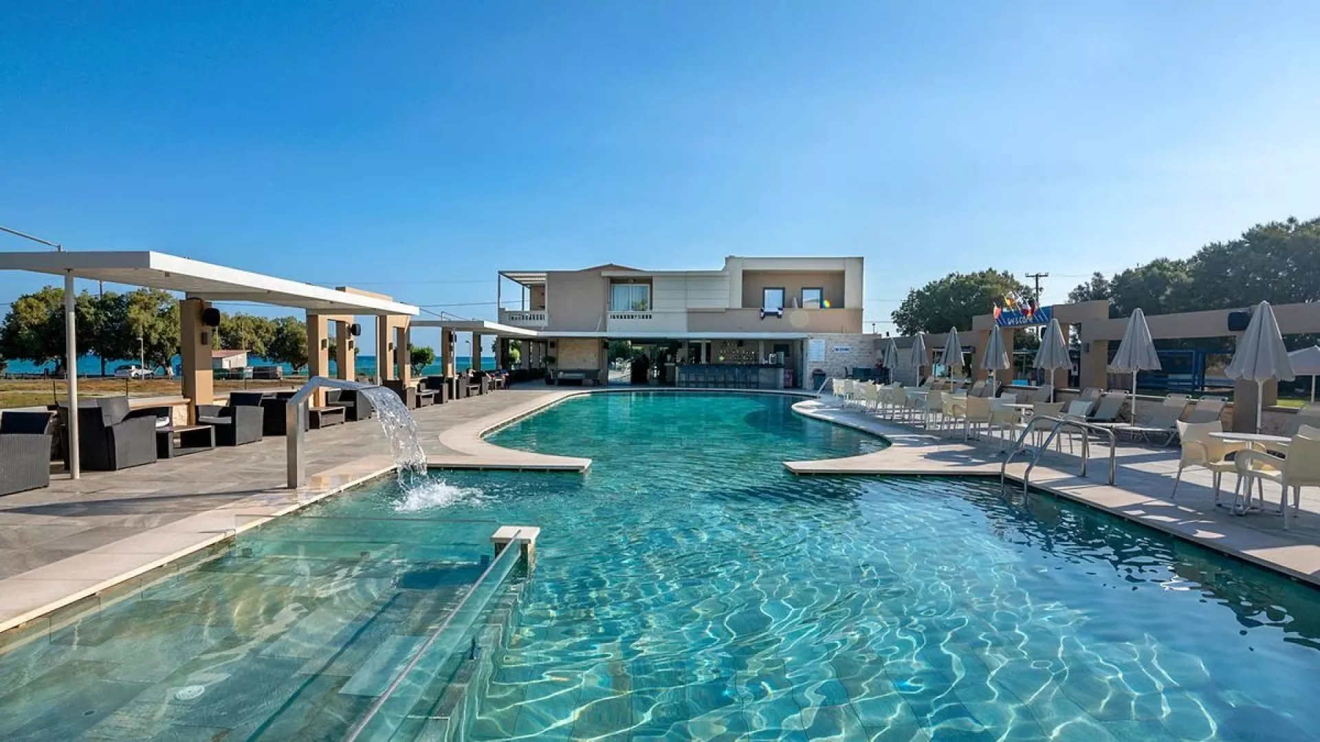 V hoteli sa nachádza vstupná hala s recepciou, spoločenská miestnosť s televíziou, internetový kútik, reštaurácia so slnečnou terasou a pool bar. K dispozícii je tiež bazén a detský bazén, pričom ležadlá a slnečníky pri bazéne sú zdarma. Na aktívny oddych sú dostupné fitness zariadenia, detské ihrisko, denné animácie a vodné športy na pláži, ako windsurfing, kajak a katamarán (pre fyzicky zdatných). Rovnako je možné využiť biliard (za poplatok).
