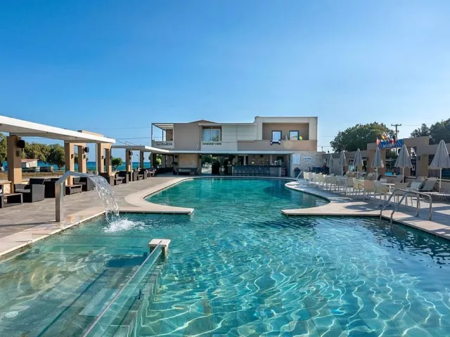 Hotel sa pýši obľúbenou okruhliakovou plážou Maleme, ktorá je prístupná priamo cez miestnu komunikáciu. Pláž ponúka pozvoľný vstup do mora, bezplatné ležadlá a slnečníky, ako aj plážové osušky za vratnú zálohu 10 EUR.