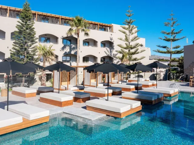 Hotelový komplex sa nachádza v letovisku Georgiopoulis a pozostáva z hlavnej budovy a bungalovov, približne 6 km od centra s barami, reštauráciami a nákupnými možnosťami. Medzinárodné letisko Chania je vzdialené asi 50 km.
