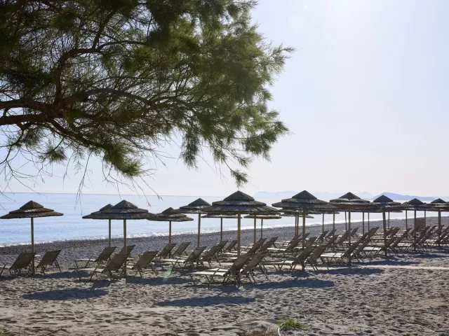 Hotel sa nachádza priamo pri verejnej piesočnato-okruhliakovej pláži s pozvoľným vstupom do mora. Slnečníky a ležadlá sú na pláži zdarma. V auguste na pláži prebieha liahnutie korytnačiek karety obyčajnej.