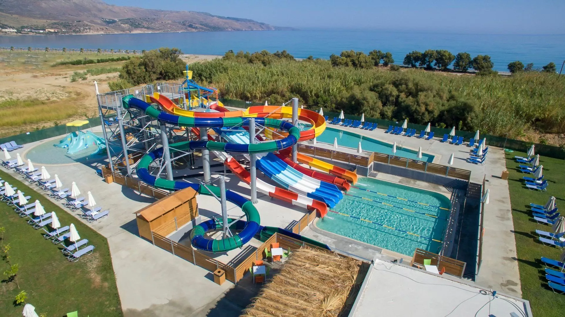 Okruhliaková pláž Kolymbari Beach sa nachádza približne 350 metrov od hotela. V oblasti aquaparku sú ležadlá a slnečníky k dispozícii zdarma, zatiaľ čo ležadlá na pláži si môžete prenajať od miestnych predajcov za poplatok.