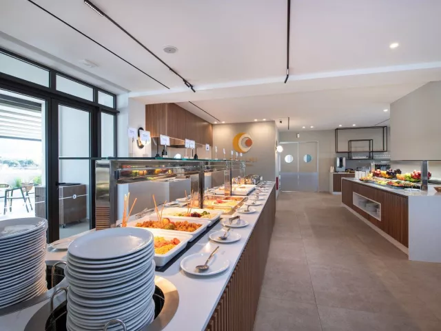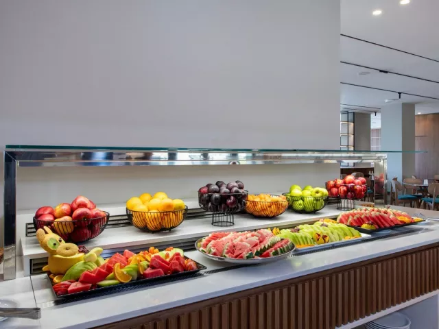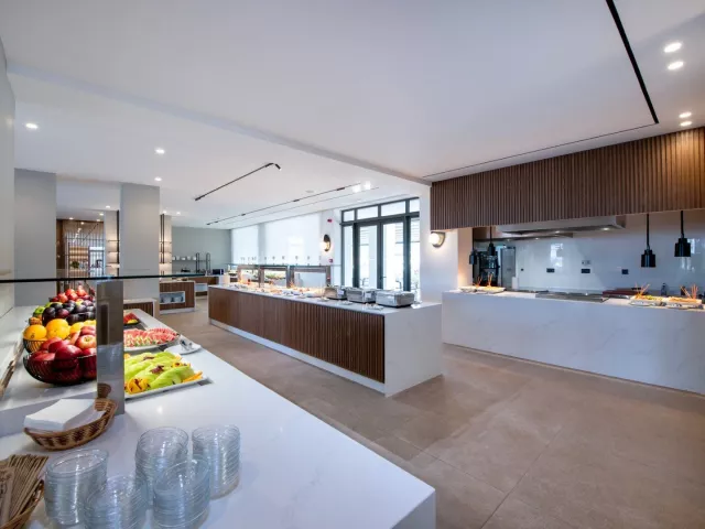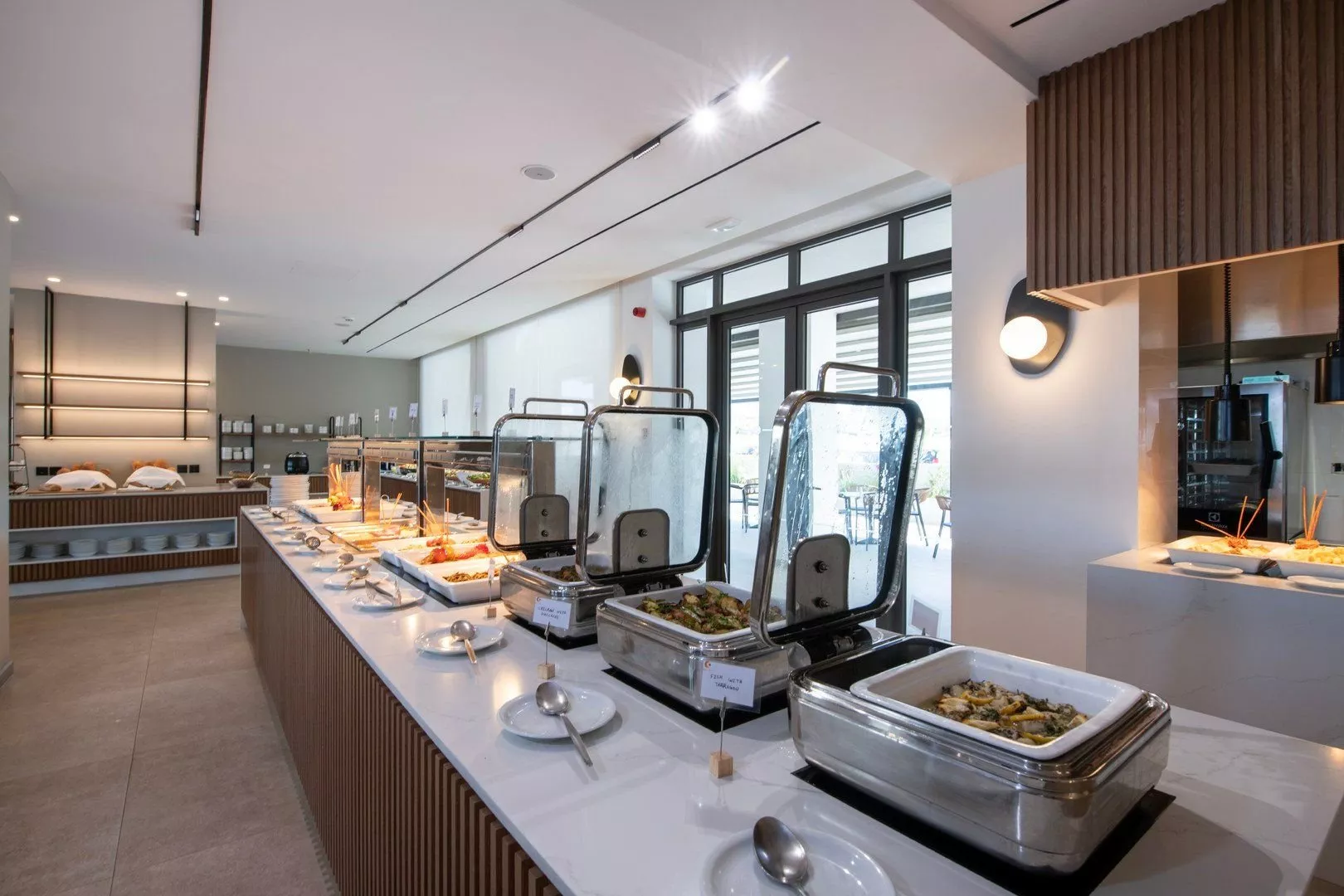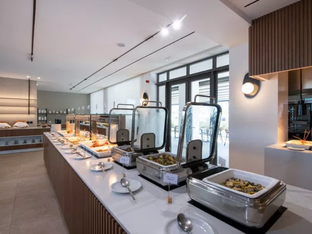 Hotel ponúka stravovanie formou all inclusive. Raňajky prebiehajú od 07:30 do 10:30, obedy od 12:30 do 14:30 a večere od 18:30 do 21:30 vo forme bufetu. Počas dňa sú k dispozícii ľahké občerstvenie, káva/čaj a dezerty. Nealkoholické a alkoholické nápoje miestnej výroby sú k dispozícii v určených časoch od 10:30 do 00:00, vrátane baru pri aquaparku.
