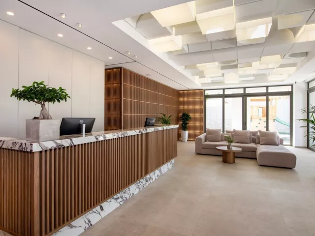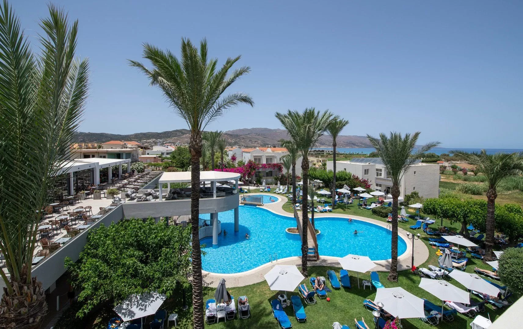 Stredisko Kolymbari ponúka široké zázemie vrátane vstupnej haly s recepciou, lobby baru, reštaurácie, bazéna, detského bazéna a detského klubu. K dispozícii je aj parkovisko, spoločenská miestnosť, terasa na slnenie a aquapark s vodnými prvkami pre deti, ktorý sa nachádza približne 150 m od hotela. Lehátka a slnečníky pri bazénoch sú zdarma a Wi-Fi na recepcii je tiež bezplatné.