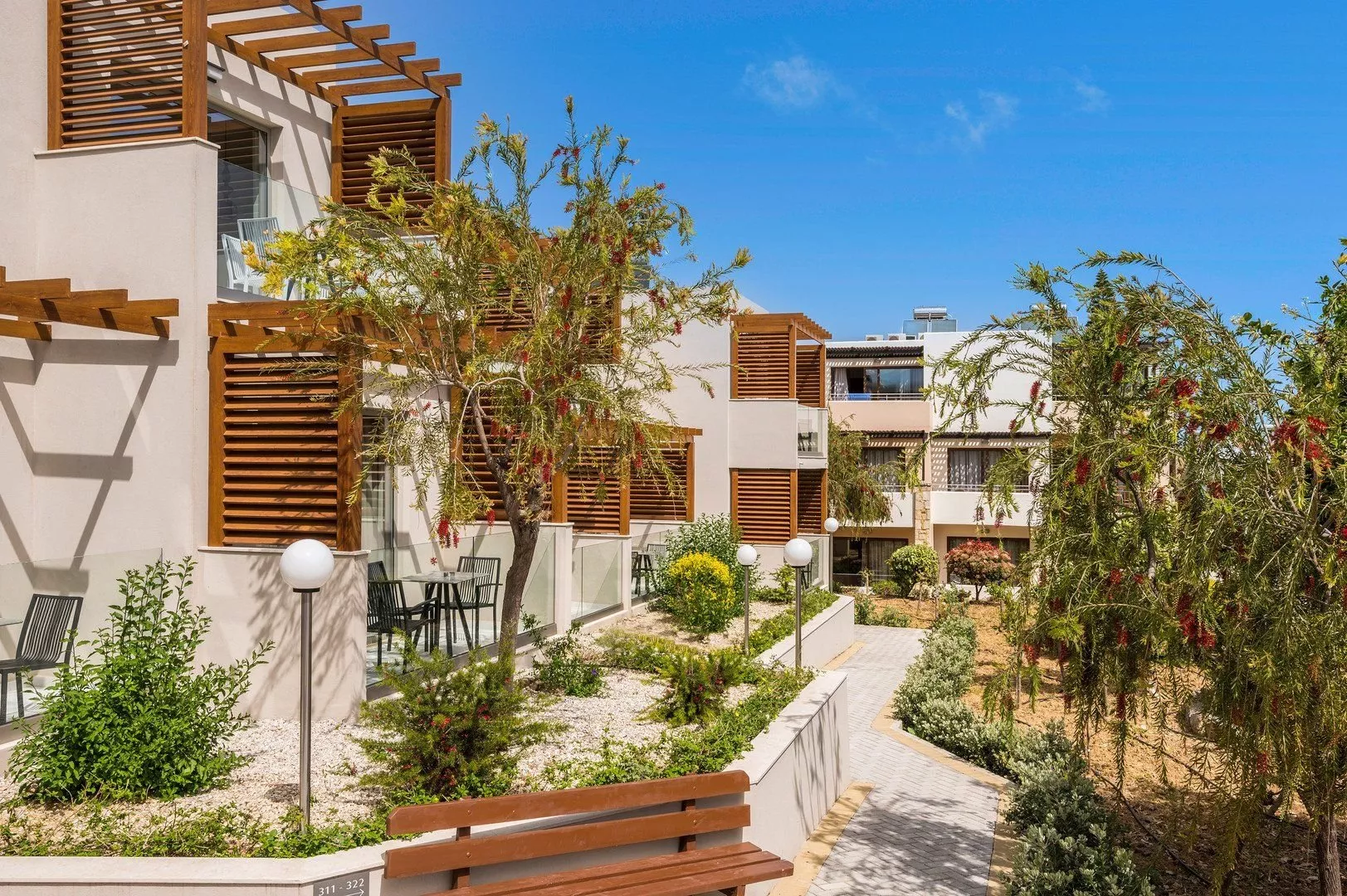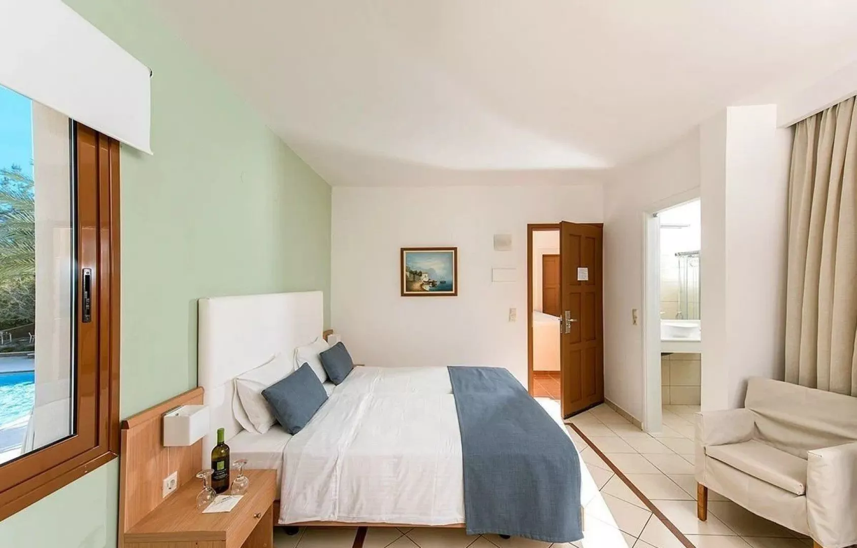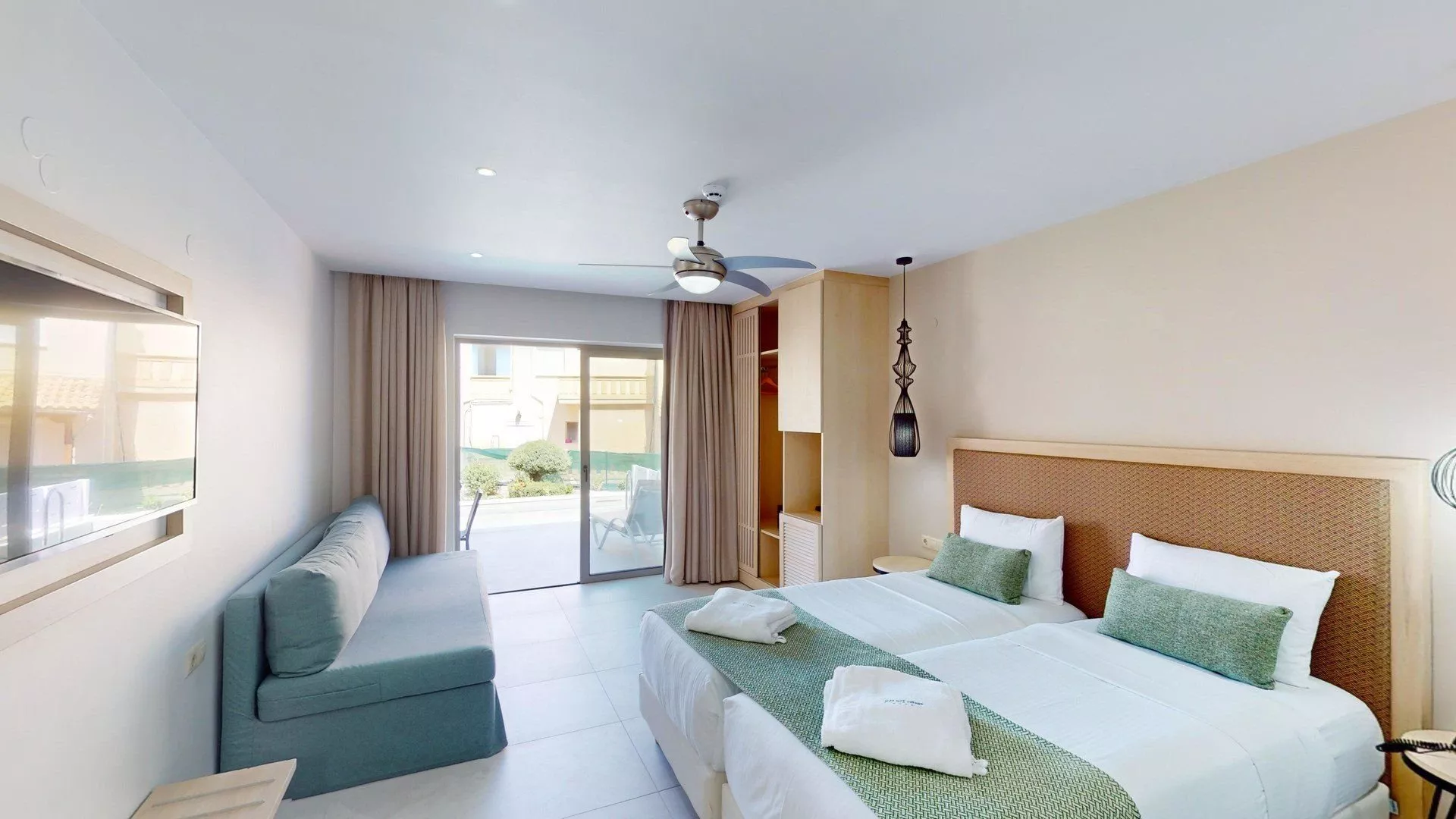 Hotel leží blízko piesočnatej pláže s pozvoľným vstupom do mora, ktorá sa nachádza pod kopcom, na ktorom je hotel, asi 900 m od neho. Prístup na pláž je cez miestnu komunikáciu. Ležadlá a slnečníky na pláži sú za poplatok.