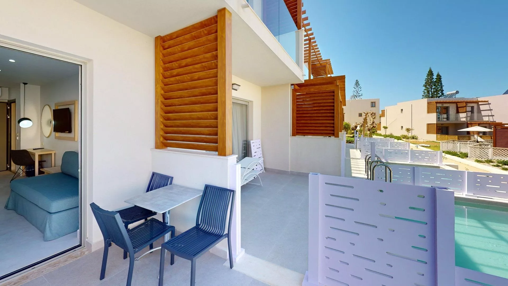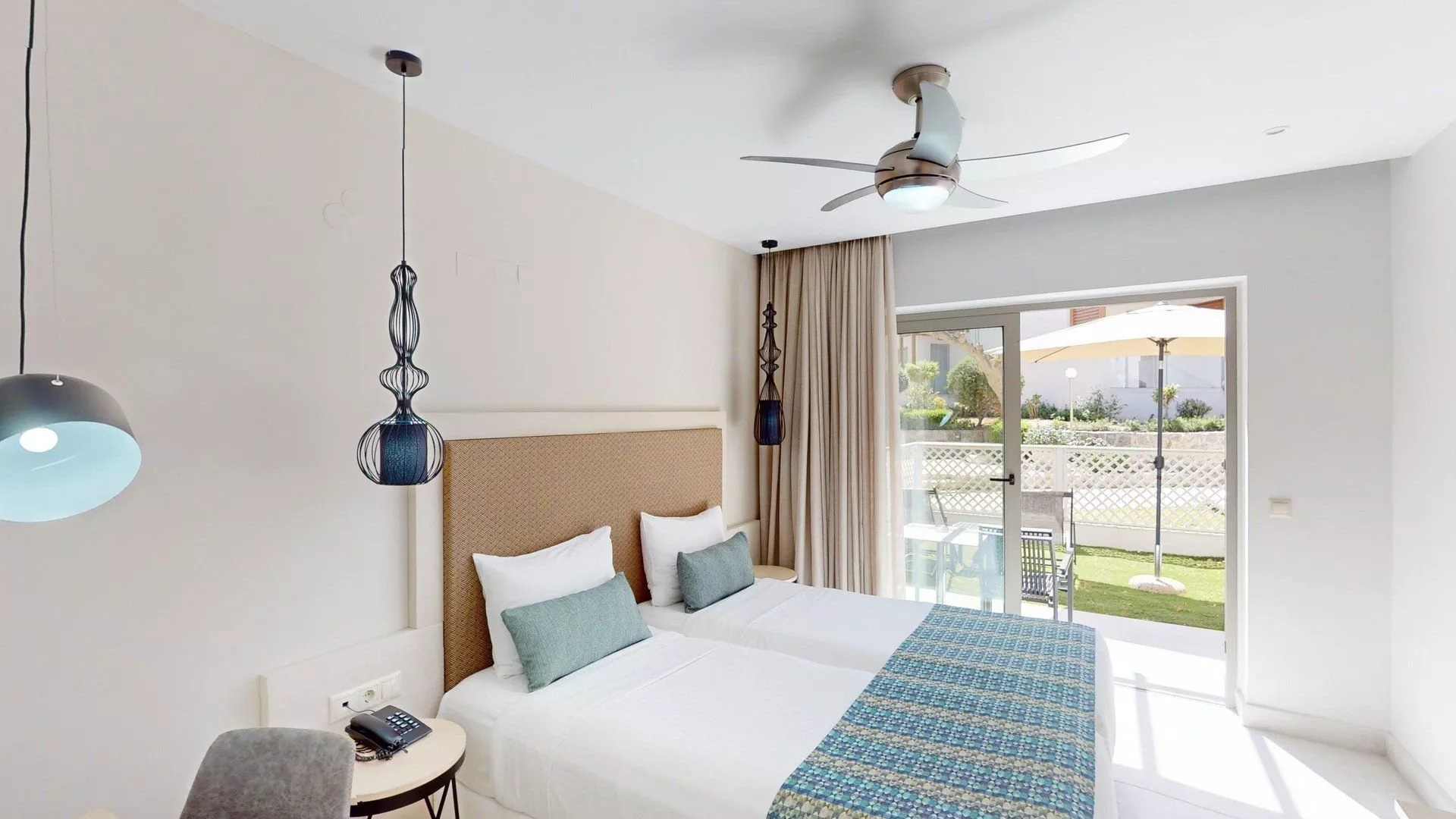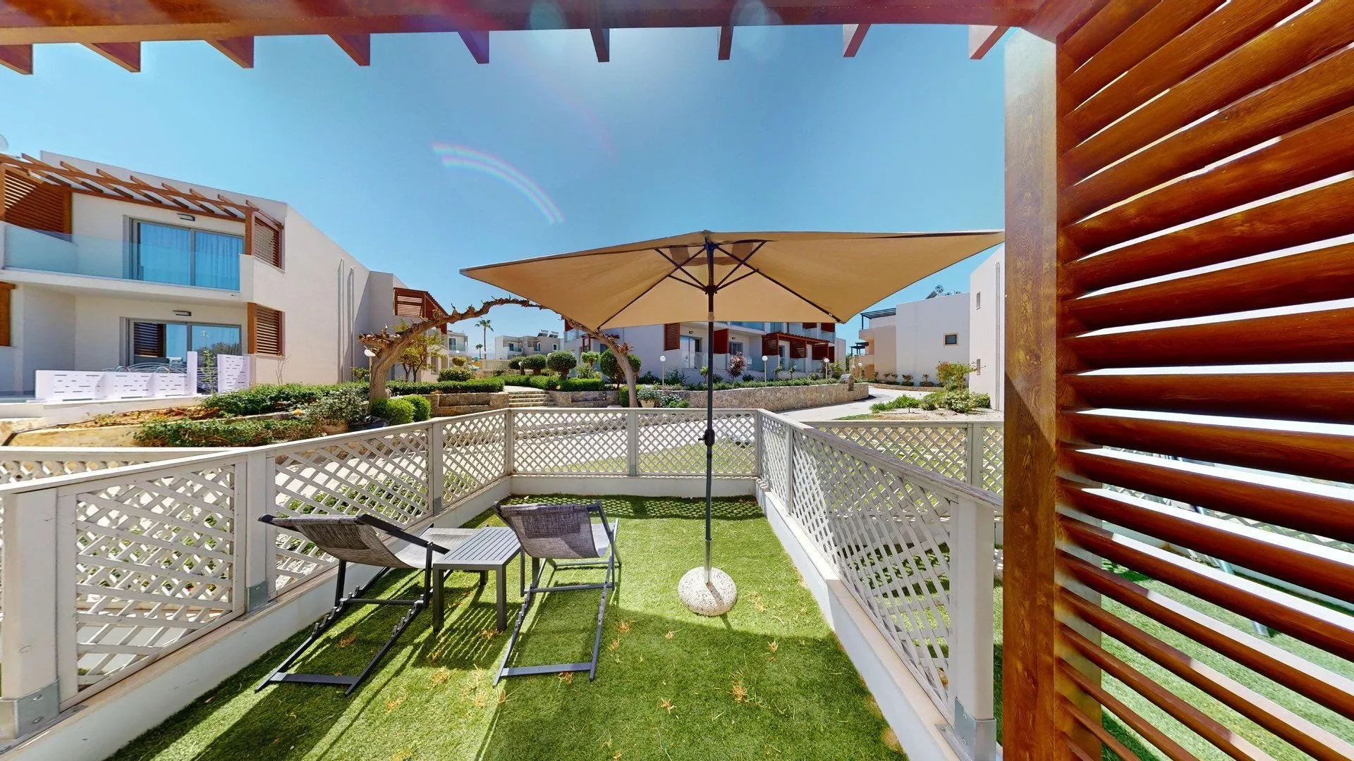 Hotel leží blízko piesočnatej pláže s pozvoľným vstupom do mora, ktorá sa nachádza pod kopcom, na ktorom je hotel, asi 900 m od neho. Prístup na pláž je cez miestnu komunikáciu. Ležadlá a slnečníky na pláži sú za poplatok.