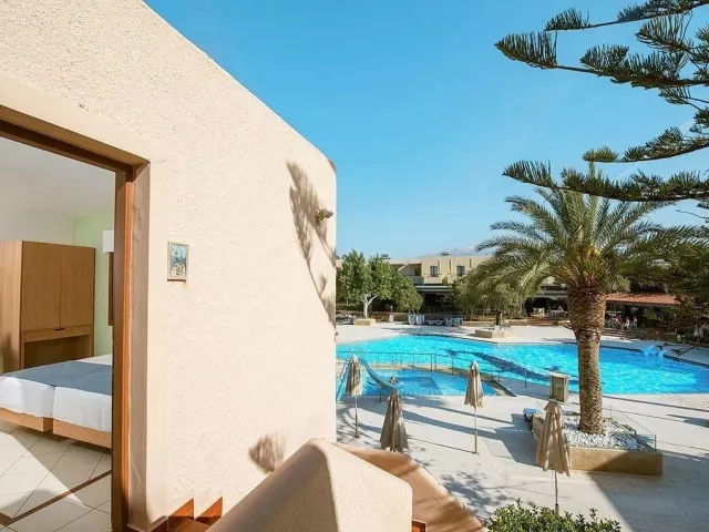 Hotel Sirios Village sa nachádza približne 14 km od letiska v Chanii a 140 km od letiska v Heraklionu. Autobusová zastávka pri hoteli poskytuje priame spojenie s okolitými letoviskami a mestami. Centrum letoviska je vzdialené asi 300 m, kde sú bary, reštaurácie a nákupné možnosti.