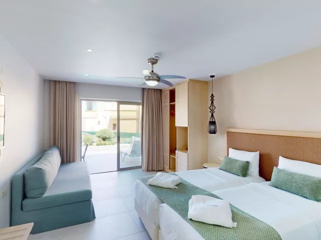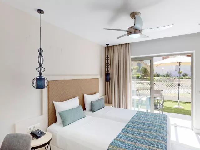 V areáli hotela sú: vstupná hala s recepciou, výťah, reštaurácia, spoločenská miestnosť s televíziou, veľká záhrada, hlavný bar, snack bar a minimarket. Wi-Fi je k dispozícii v vstupnej hale zdarma. Hotel má tri bazény, vrátane bazéna pre deti s tobogánmi. Ležadlá a slnečníky pri bazéne sú zdarma. Pre športových nadšencov je k dispozícii fitness, vonkajšie šachy, detské ihrisko a stolný tenis. Deti vo veku od 4 do 12 rokov môžu využiť detský klub s animáciami. Za príplatok sú k dispozícii aj minifutbal, tenisový kurt, biliard a vodné športy na pláži. Služby all inclusive sú dostupné až do check-outu.