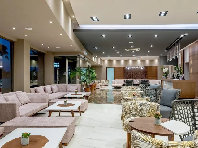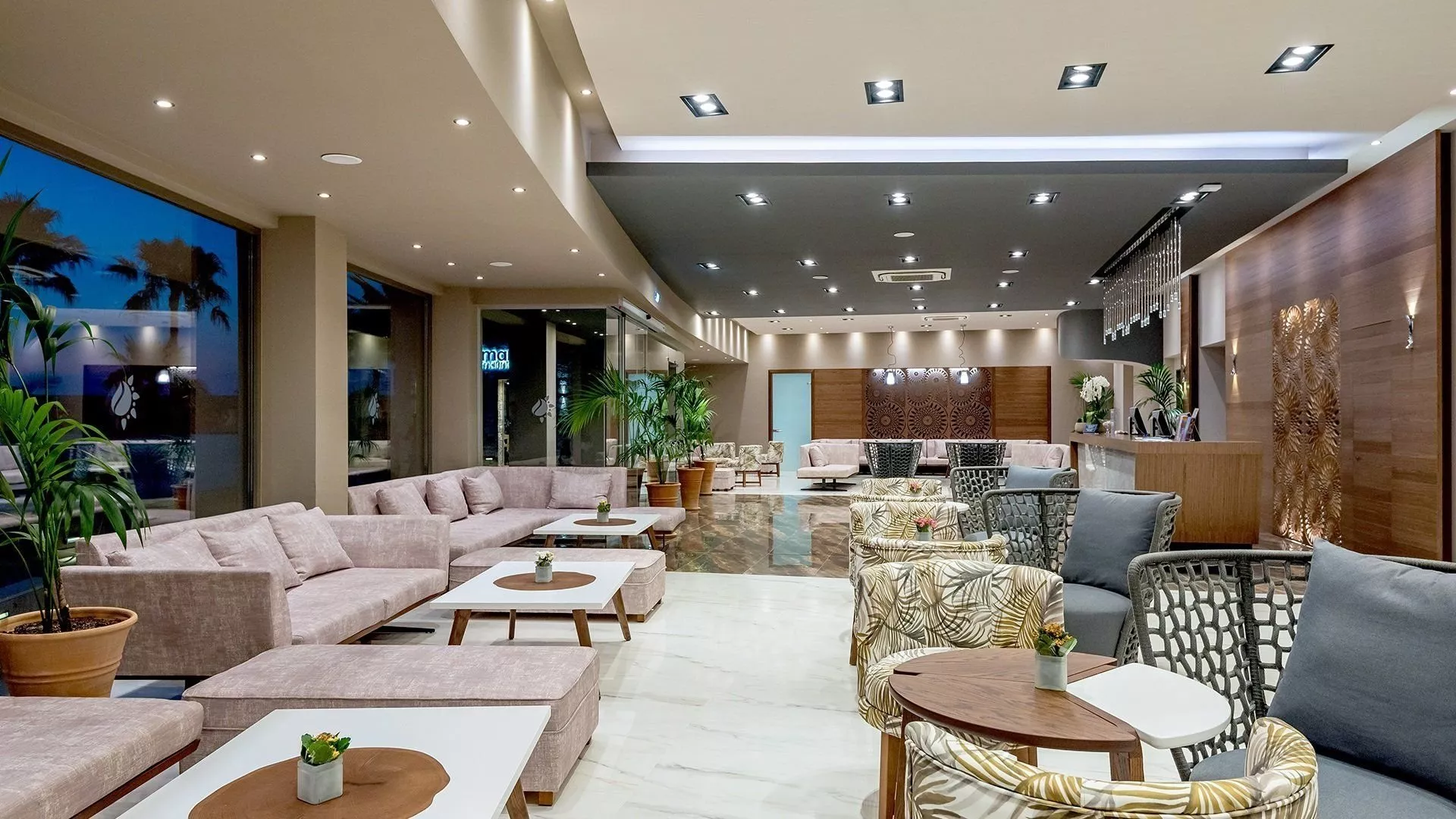 Hotel ponúka moderné vybavenie, vrátane vstupnej haly s recepciou, hlavnej reštaurácie, a à la carte reštaurácie s obsluhou. K dispozícii je tiež hlavný bar, pool bar, knihovňa, Wi-Fi pripojenie, bazén, detský bazén so šmykľavkami a slnečná terasa. Na hotelovom území je parkovisko a lekár na telefóne. Ležadlá, slnečníky a osušky sú pri bazéne zdarma. Pre aktívne trávenie voľného času možno využiť aqua gym, šípky, animačné programy pre deti aj dospelých, fitness, stolný tenis a tenisový kurt. Za príplatok sú dostupné wellness služby, herňa, biliard, lekcie tenisu a vodné športy na pláži. V rámci All inclusive Premium si môžete dopriať fľašu vína na izbe, minibar doplnený každý deň a VIP vybavenie kúpeľňových sád.