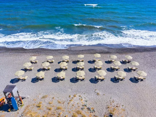 Blízko hotela sa nachádza pláž Pirgos Psilonerou, ktorá je piesočnato-okruhliaková a vzdialená asi 300 m od hotela. Na pláži sú ležadlá a slnečníky k dispozícii zdarma a nachádza sa tu aj sprcha.