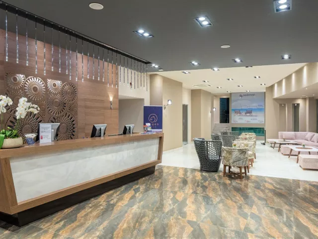 Hotel Solimar Aquamarine sa nachádza približne 30 km od medzinárodného letiska v Chanii a 154 km od letiska v Heraklione. Leží neďaleko centra letoviska Platanias, iba 4 km od jeho centra a 16 km od mesta Chania, kde nájdete množstvo reštaurácií, barov a zábavy.