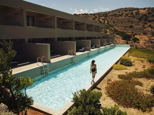 Hotel sa nachádza v najluxusnejšom letovisku na ostrove Elounda, priamo pri piesočnatej a kamienkovej pláži. Ubytovanie je umiestnené vo viacerých budovách na svahu s výhľadom do udržiavanej záhrady alebo na more. V blízkosti sa nachádza malé mestečko s reštauráciami a prístavom, odkiaľ sa organizujú výlety na ostrov Spinalonga, vzdialený asi 2,5 km.