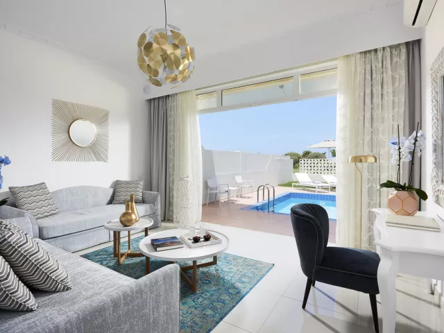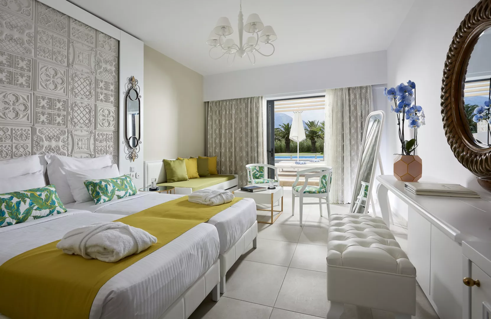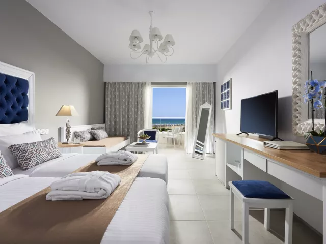 Typy izieb: dvojlôžkové izby Deluxe, možnosť jednej prístelky, dvojlôžkové izby Deluxe bočne orientované na morskú stranu, možnosť jednej prístelky, izby Executive so súkromným zdieľaným bazénom pre 2 – 4 osoby, junior suity typu Beach Front pre 2 – 4 osoby ( 2 miestnosti), jednolôžkové izby, junior suity typu Beach Front so súkromným bazénom (info v CK), Vybavenie izieb: TV/SAT, telefón, WiFi (zdarma), klimatizácia, minichladnička, trezor (zdarma), set na prípravu kávy a čaju, vlastné sociálne zariadenie, sušič na vlasy, balkón alebo terasa, Vybavenie hotela: recepcia, WiFi v areáli hotela, hlavná reštaurácia, 2 á la carte reštaurácie (za poplatok), 3 bary (centrálny bar, bar pri bazéne a bar na pláži), bazén pre dospelých a bazén pre deti, vnútorný bazén, ležadlá a slnečníky pri bazéne a na pláži (zdarma), wellness centrum (za poplatok), fitness, minimarket, klenotníctvo (za poplatok), o vhodnosti pre imobilných klientov sa prosím informujte v CK,