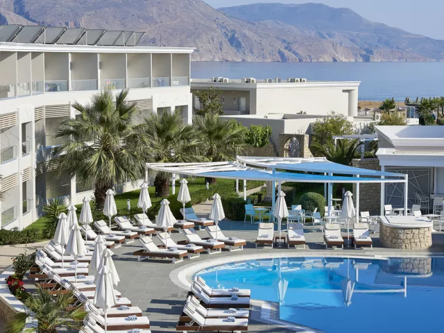Moderný hotelový rezort Mythos Palace sa nachádza v letovisku Georgioupolis, pri piesočnatej pláži ocenennej modrou vlajkou. Hotel ponúka služby na vysokej úrovni. Vzdialenosti pláž 0 m, centrum 6 km (Georgopolis), nákupné možnosti 1 km, letisko 100 km,