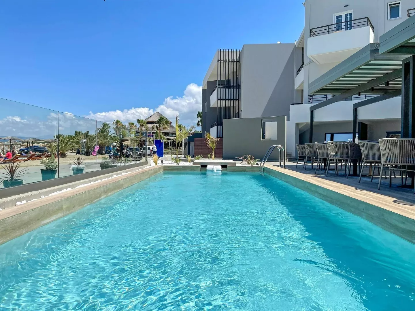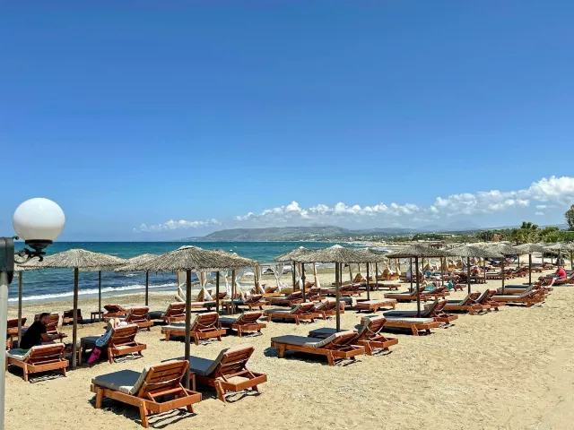 Menší hotel, cca 100 km od letiska v Heraklione a cca 45 km od letiska Chania. V okolí niekoľko reštaurácií barov, obchodov. Dobré autobusové spojenie do mesta Rethymno.