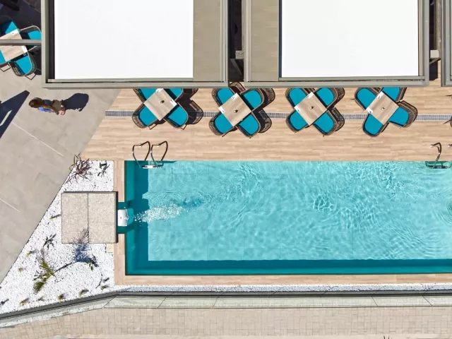 49 izieb, recepcia, vonkajšia reštaurácia s barom (umiestnená pri bazéne), menší bazén so sladkou vodou.