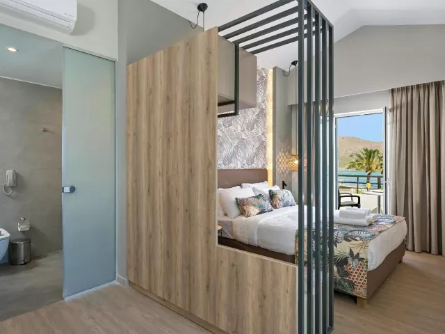 Dvojlôžková izba: kúpeľňa/WC (sušič vlasov), klimatizácia (zadarmo), TV/sat., telefón, trezor (za poplatok cca 3 EUR/deň), chladnička, set na prípravu čaju a kávy, balkón alebo terasa. Ostatné typy izieb (pokiaľ nie je uvedené inak, majú izby vyššie uvedené vybavenie) Dvojlôžková izba, Bočný výhľad mora: čiastočný výhľad na more. Dvojlôžková izba, Výhľad mora Junior Suita, Výhľad do záhrady : priestranná izba s pohovkou. Junior Suita, Bočný výhľad na more: priestranná izba s pohovkou. Junior Suita, Výhľad na more: priestranná izba s pohovkou. Suita, Výhľad na more : oddelená spálňa a obývacia časť s pohovkou. Jednolôžková izba