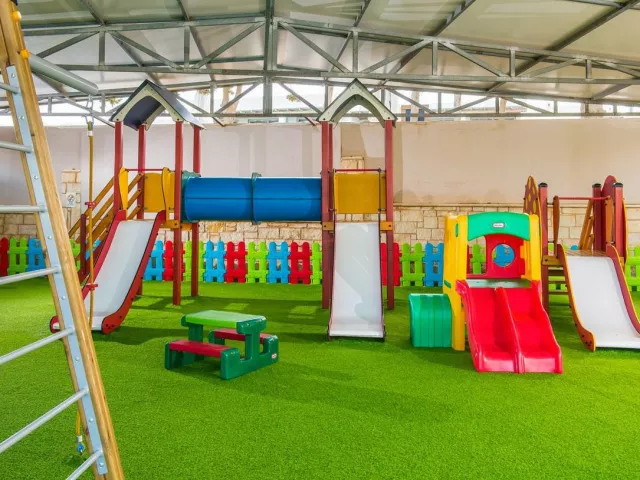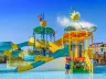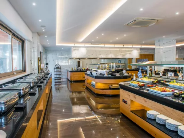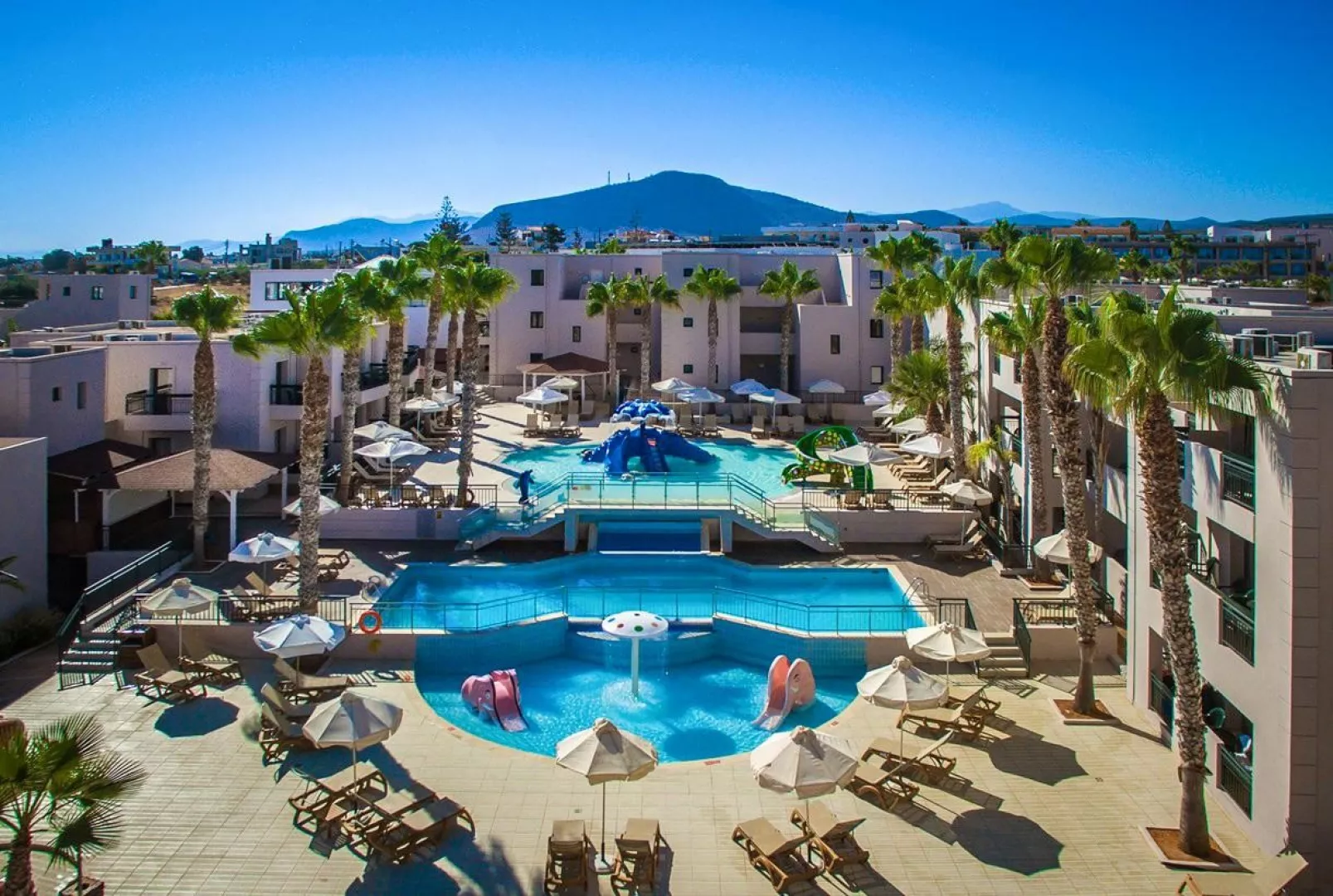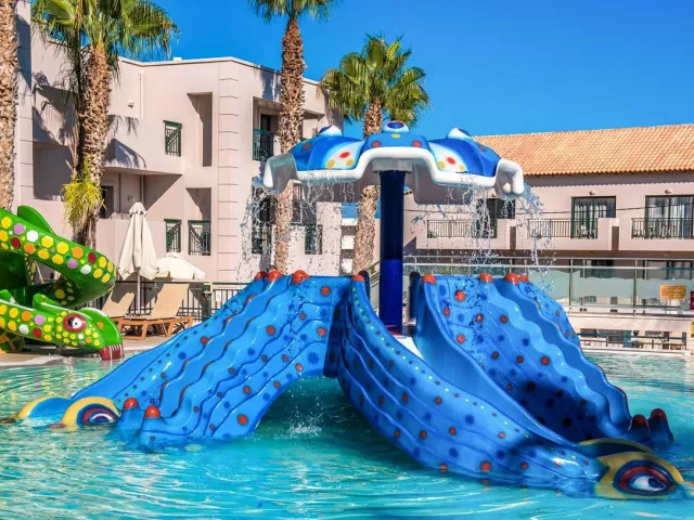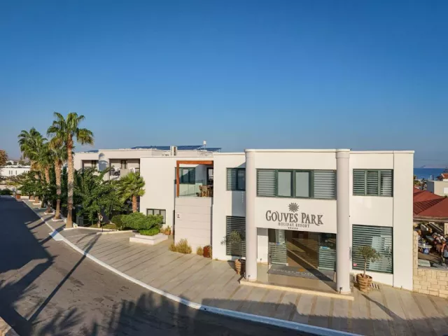 Hotel sa nachádza priamo v centre Gouves, čo je ideálne pre tých, ktorí si chcú užiť aktívnu dovolenku. Súčasťou hotela sú tri vodné parky s tobogánmi, šmykľavkami a vodnými atrakciami pre všetky vekové kategórie. Rezort pozostáva z niekoľkých elegantných budov postavených v gréckom štýle, ponúkajúc rodinnú atmosféru, ktorá je prispôsobená pre príjemný pobyt. Okolitá oblasť ponúka miestne kostoly, jaskyne Skotino a tradičné taverny, ktoré sú lákadlom pre návštevníkov.