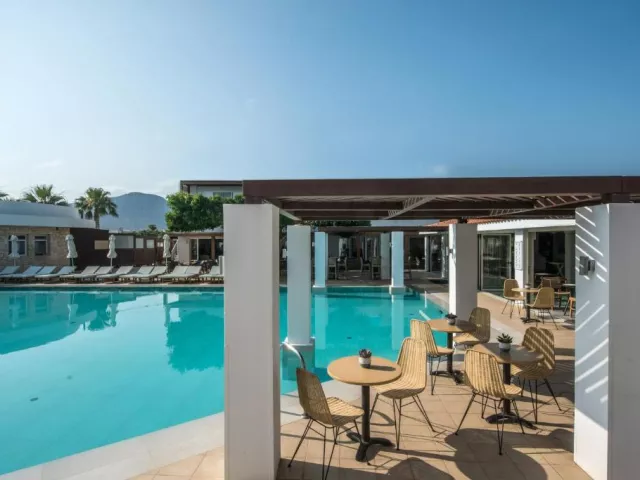 Verejná pláž je vzdialená cca 600 m od hotela a ponúka piesočnatý vstup do mora. Hostia môžu využiť bezplatný kyvadlový autobus na pláž, ležadlá a slnečníky sú za príplatok.