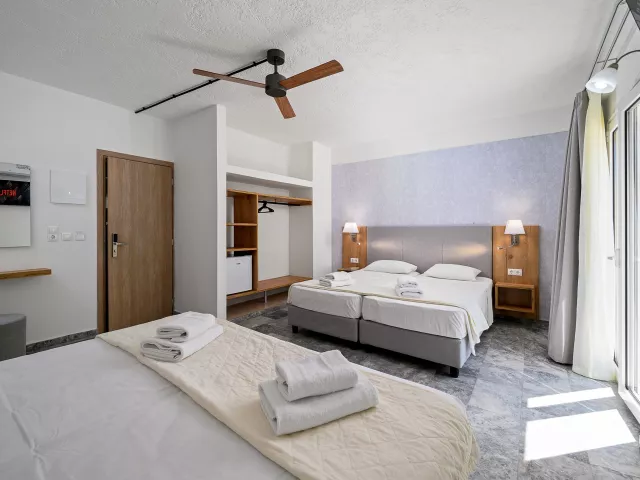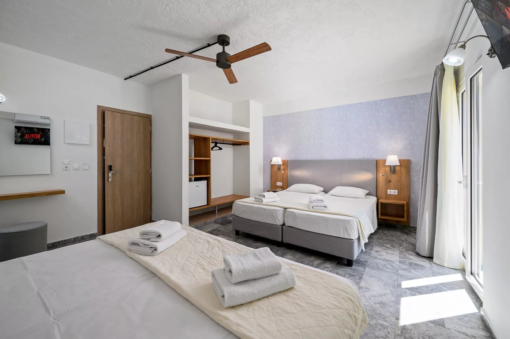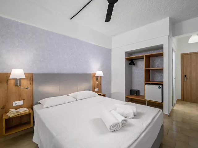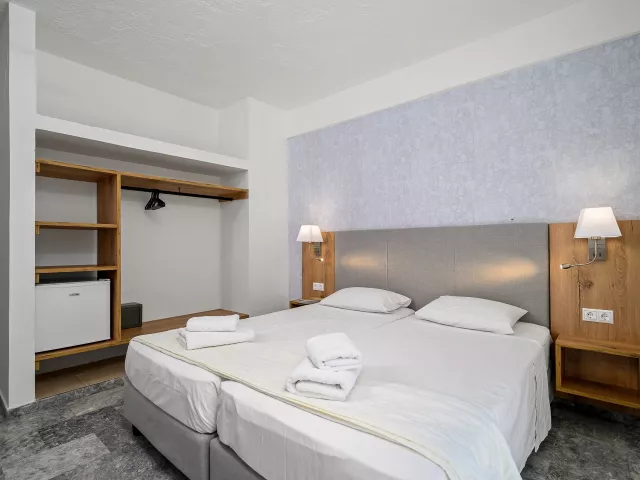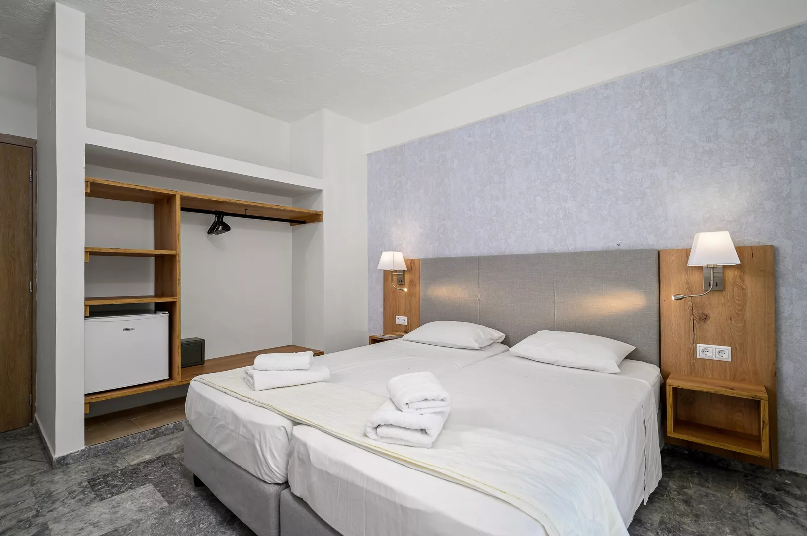 Hotel ponúka dvojlôžkové izby s kúpeľňou (WC, sprcha, fén), klimatizáciou, telefónom, TV, chladničkou a trezorom (za poplatok). Rodinné izby sú tiež dostupné v open plan štýle s podobným vybavením.
