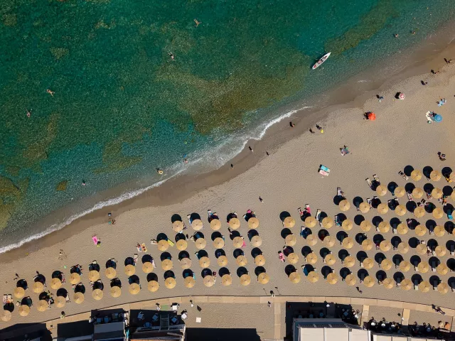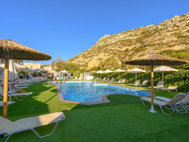 Hotel leží len cca 50 metrov od verejnej pláže s piesočnato-okruhliakovým charakterom a pozvoľným vstupom do mora. Pláž má certifikát Modrá vlajka a ležadlá a slnečníky sú za poplatok.