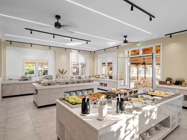 Hotel ponúka stravovanie formou all inclusive, ktoré zahŕňa raňajky, obedy a večere podávané formou bufetu. K dispozícii sú miestne nealkoholické a alkoholické nápoje v časoch určených hotelom (10:30 - 23:00).