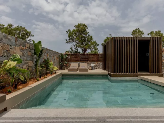 Dvojlôžková izba Deluxe so súkromným bazénom je vybavená vlastným príslušenstvom (kúpeľňa, sprcha, WC, fén), klimatizáciou, Wi-Fi pripojením, TV/SAT, setom na prípravu kávy a čaju, minibarom a terasou so súkromným bazénom. Na vyžiadanie a za príplatok sú k dispozícii aj suit s vlastným bazénom, vila so súkromným bazénom a parnou kúpeľou, alebo vila so súkromným bazénom a saunou.