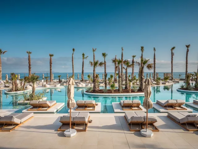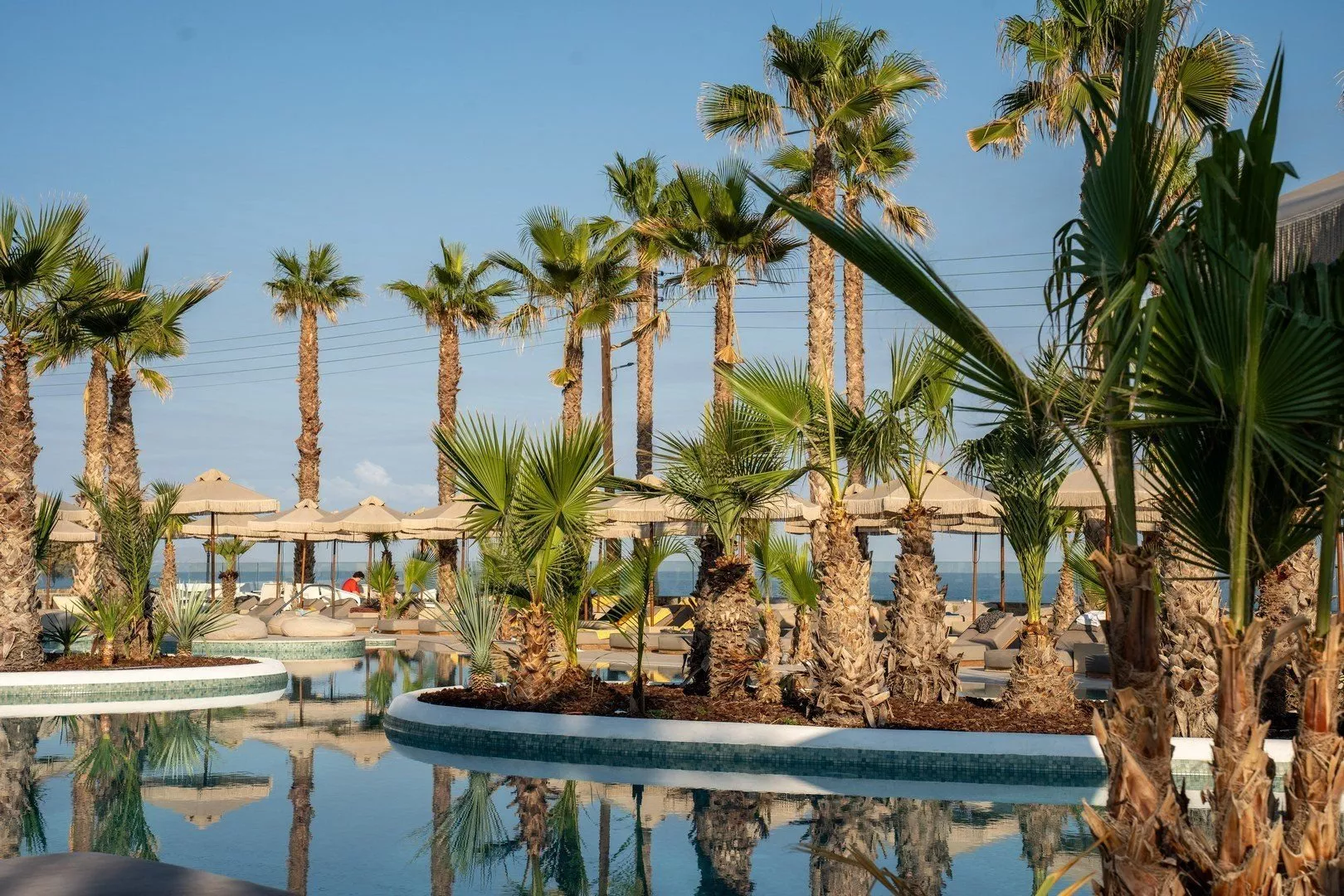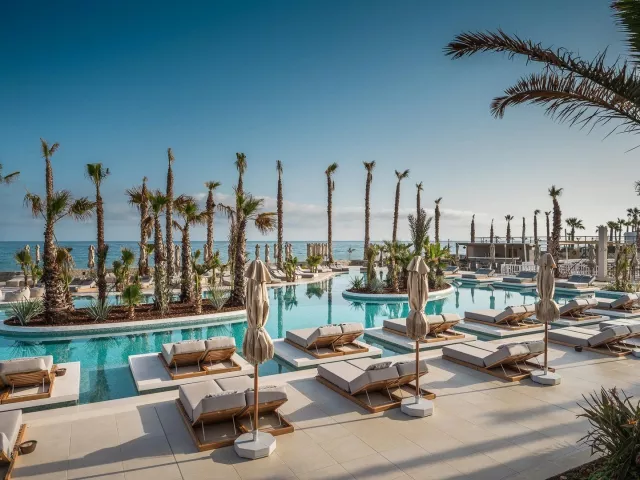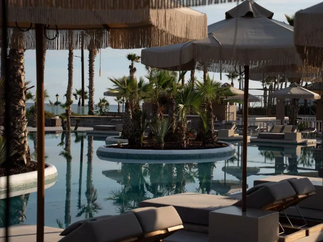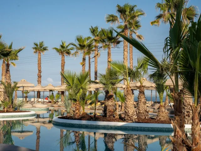 Piesočnato-okruhliaková pláž s pozvoľným vstupom do mora sa nachádza priamo pri hoteli. Lehátka a slnečníky na pláži sú k dispozícii zdarma. Pláž je od hotela oddelená miestnou komunikáciou.
