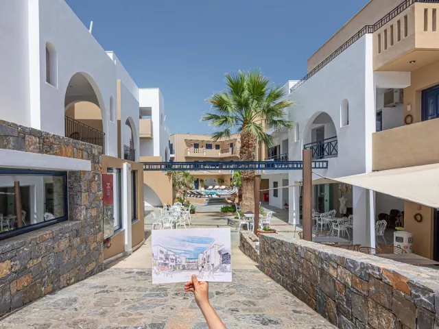 Luxusný komplex vzdušných dvojpodlažných budov sa nachádza priamo v centre letoviska Stalida. V tesnej blízkosti hotela sa nachádzajú miestne taverny, reštaurácie, bary a obchody. Letisko Heraklion je vzdialené približne 30 km.