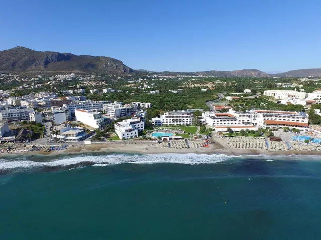 Rodinou prevádzkovaný hotel Albatros Resort & Spa sa nachádza na okraji mesta Hersonissos, priamo pri piesočnato-kamienkovej pláži. Ponúka vkusne zariadené izby a kvalitné SPA centrum. V okolí hotela sú mnohé miestne reštaurácie, obchody, bary a diskotéky. Autobusová zastávka je vzdialená približne 350 metrov.
