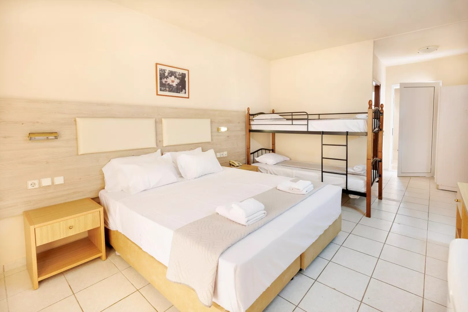 Dvojlôžková izba je vybavená kúpeľňou/WC (sušič vlasov), klimatizáciou (1.7.-31.8. zadarmo, inak za poplatok), TV/sat., telefónom, mini chladničkou, trezorom (za poplatok) a balkónom alebo terasou. Ostatné typy izieb zahŕňajú štvorlôžkové izby s prístelkami formou poschodovej postele a rodinné izby s dvomi spálňami.