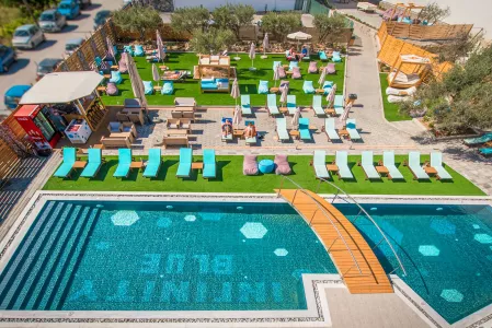 Rezort sa nachádza priamo na krásnej piesočnatej pláži s pozvoľným vstupom do mora, ktorá je ocenená Modrou vlajkou. Na pláži sú k dispozícii ležadlá, slnečníky a osušky bez poplatku, ako aj centrum vodných športov za dodatkový poplatok.