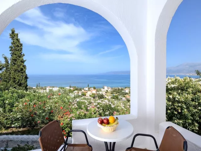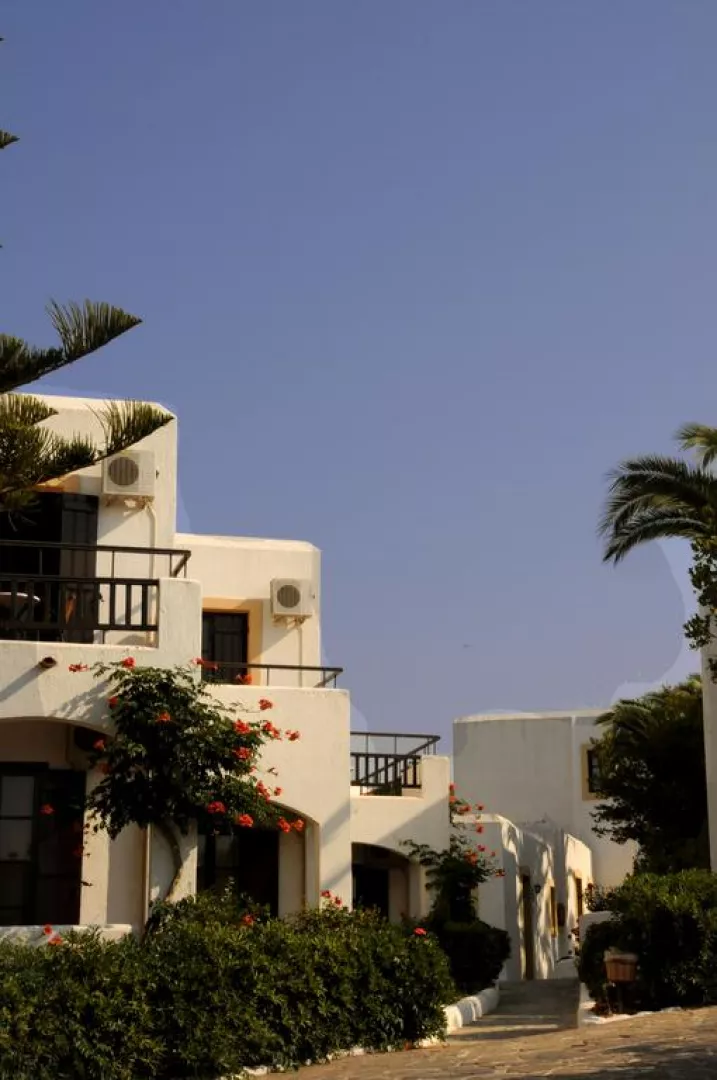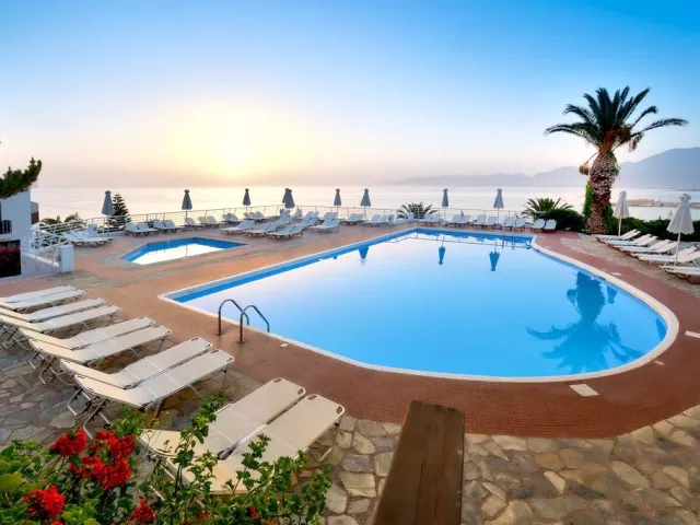 Hotel sa nachádza na okraji mesta Hersonissos, na kopci s prekrásnym výhľadom na záliv. S tradičnou krétskou architektúrou je zložený z bielych bungalovov umiestnených v udržiavanej záhrade. Ideálny pre tých, ktorí hľadajú odpočinok, ale chcú byť blízko rušného centra.