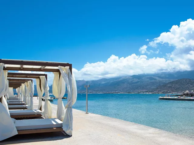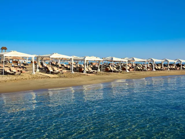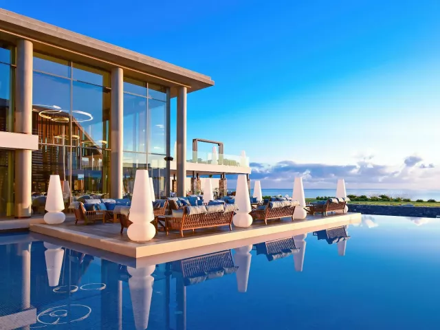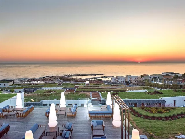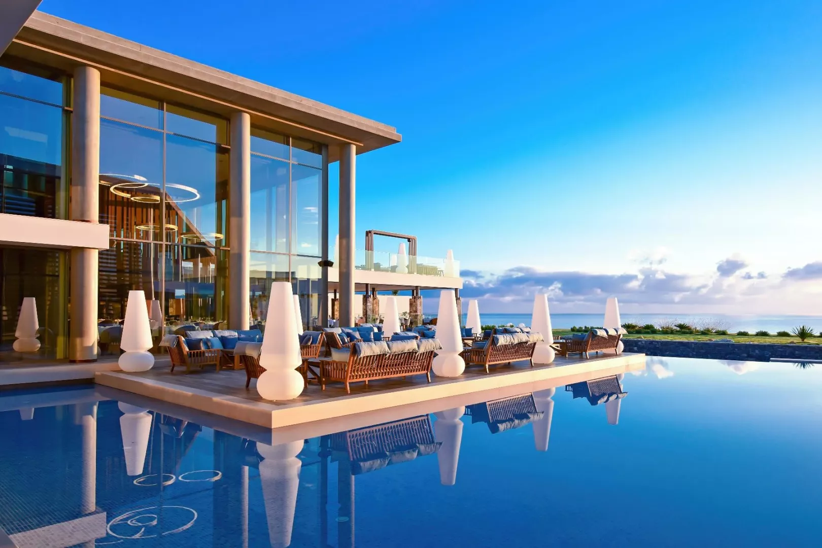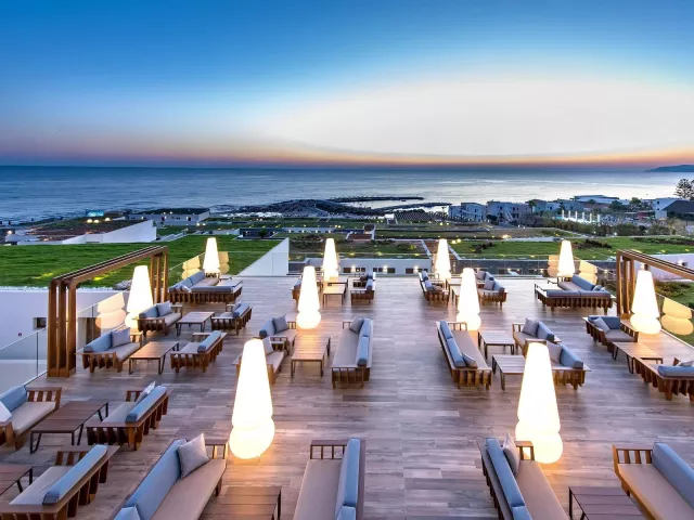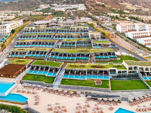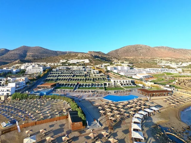 Jeden z najluxusnejších hotelov na ostrove sa nachádza na severnom pobreží Kréty v oblasti Hersonissos, priamo pri súkromnej piesočnatej pláži. Ponúka 102 štýlových suít a víl, z ktorých väčšina disponuje súkromným vyhrievaným bazénom, vírivkou, saunou či posilňovňou, a všetky majú priamy výhľad na more. Areál sa rozkladá terasovito smerom k oceánu a zahŕňa dva vonkajšie bazény s morskou vodou, detský bazén, vnútorný bazén a súkromnú pláž s lehátkami a plážovým barom. Hostia majú na výber tri à la carte reštaurácie, ktoré sú súčasťou prestížneho Michelin guide. Večere sú často obohatené o zážitok v podobe živej hudby a tematických večerov. Súčasťou rezortu je 1 400 m² wellness centrum Royal Wellness Club s krytým bazénom, saunou, hammamom, parnými kúpeľmi, špičkovým fitness a širokou ponukou procedúr. Rezort poskytuje osobné concierge, VIP služby aj bohaté športové a voľnočasové vyžitie, vďaka čomu je ideálny pre páry aj náročných klientov hľadajúcich luxus, súkromie a vysoký štandard služieb.